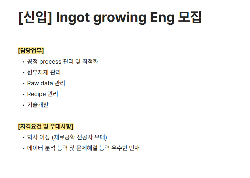 [하나머티리얼즈] [신입] Ingot growing Eng 모집
