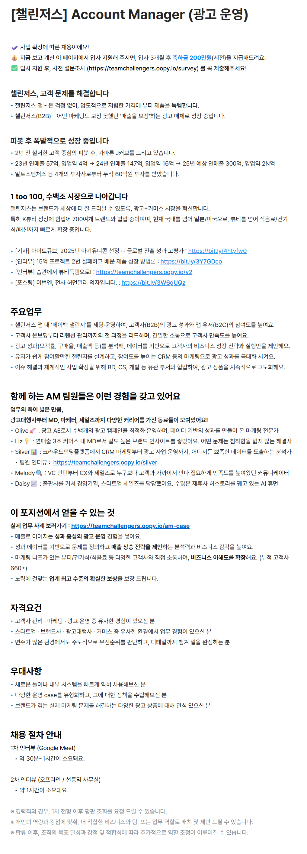 [화이트큐브] [챌린저스] Account Manager (광고 운영)