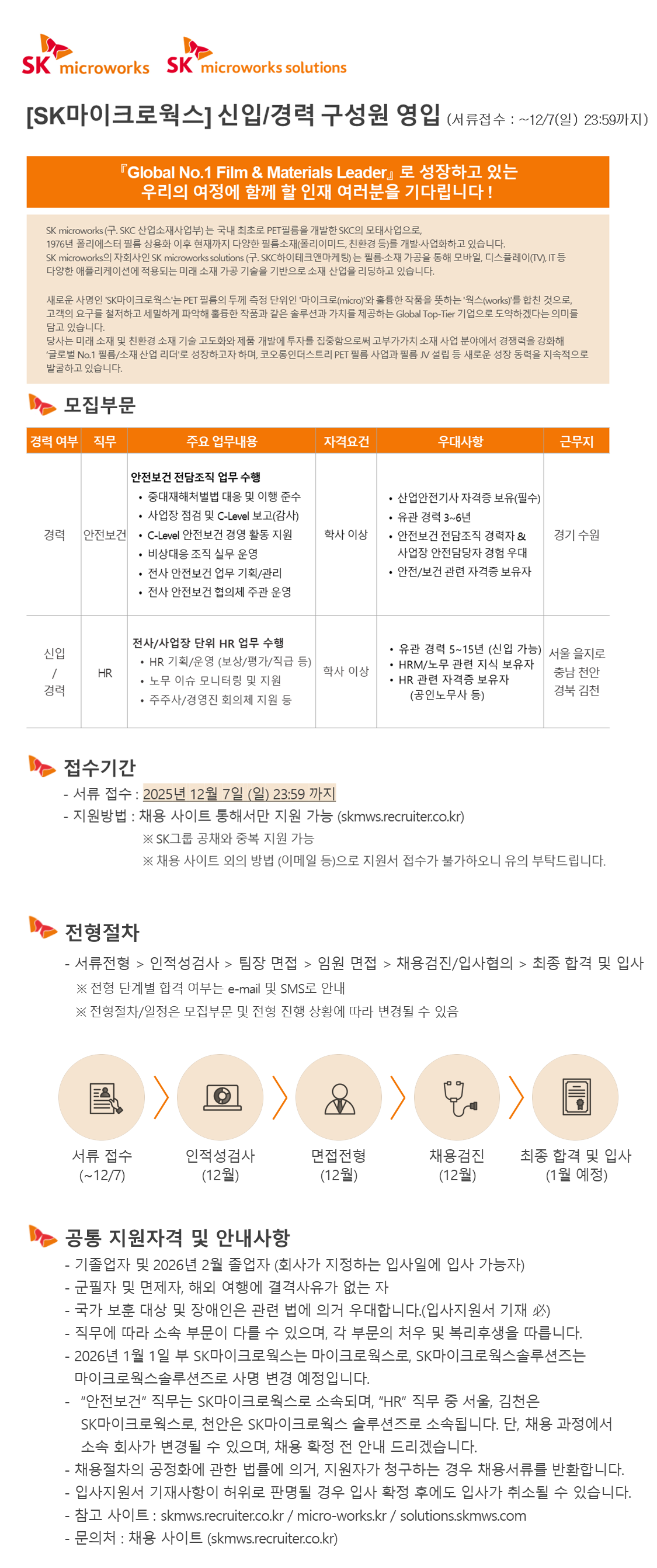 [SK마이크로웍스] 신입/경력 구성원 모집 (안전보건, HR)