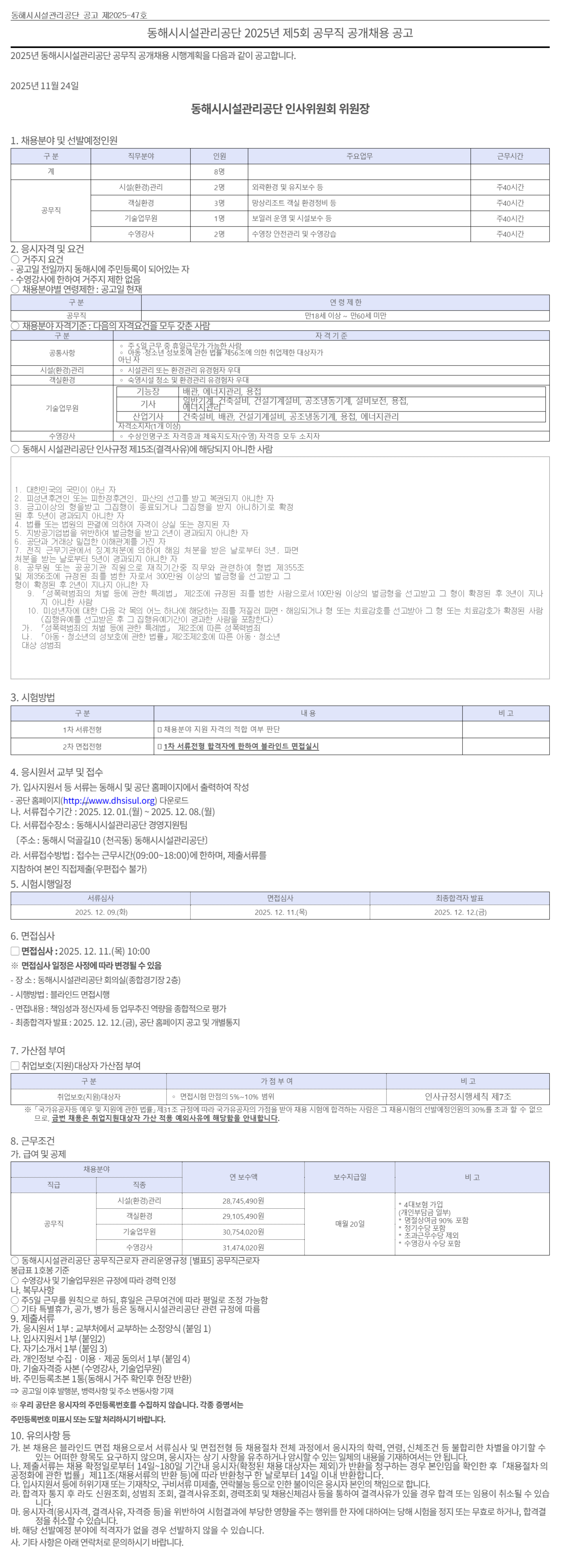 [동해시시설관리공단] 2025년 제5회 공무직 공개채용