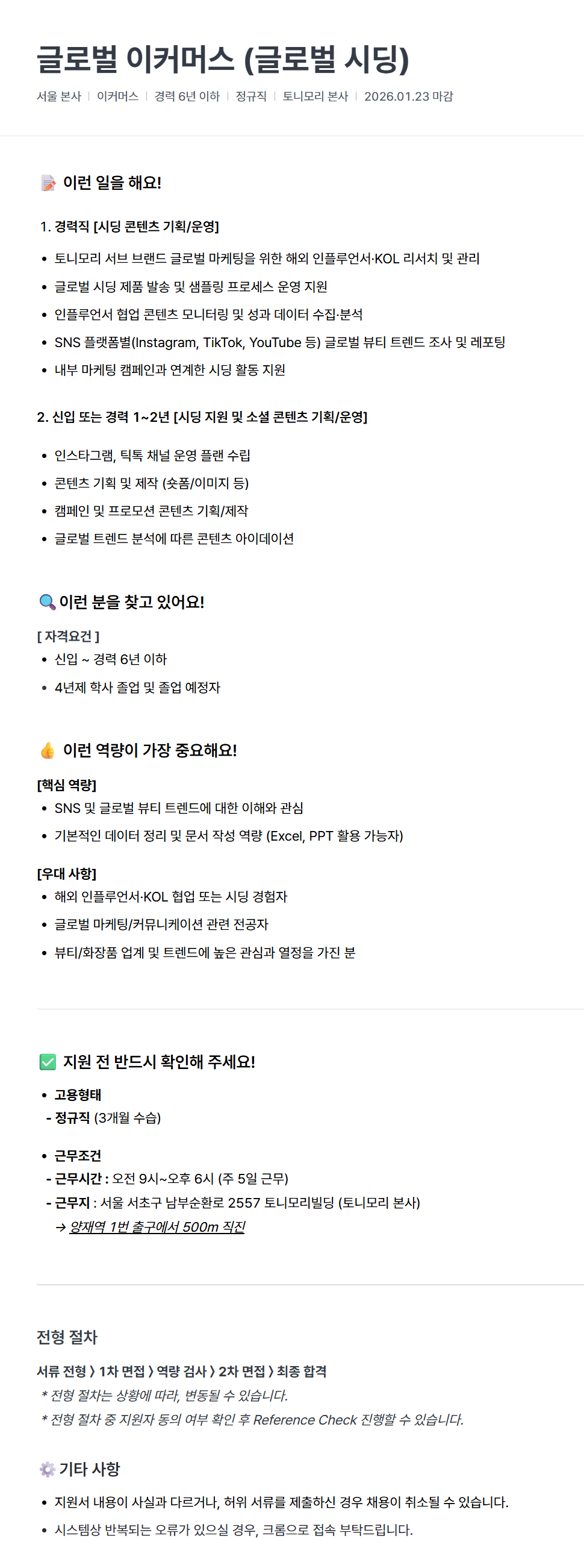[토니모리] 글로벌 이커머스 (글로벌 시딩) 채용