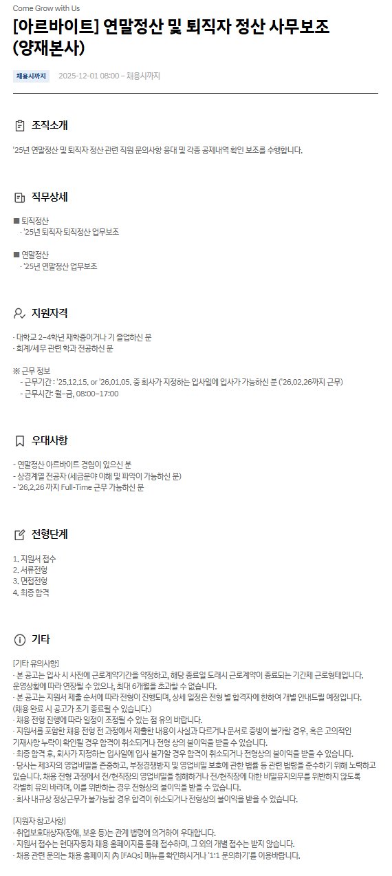 [현대자동차] 연말정산 및 퇴직자 정산 사무보조 (양재본사) 아르바이트 채용