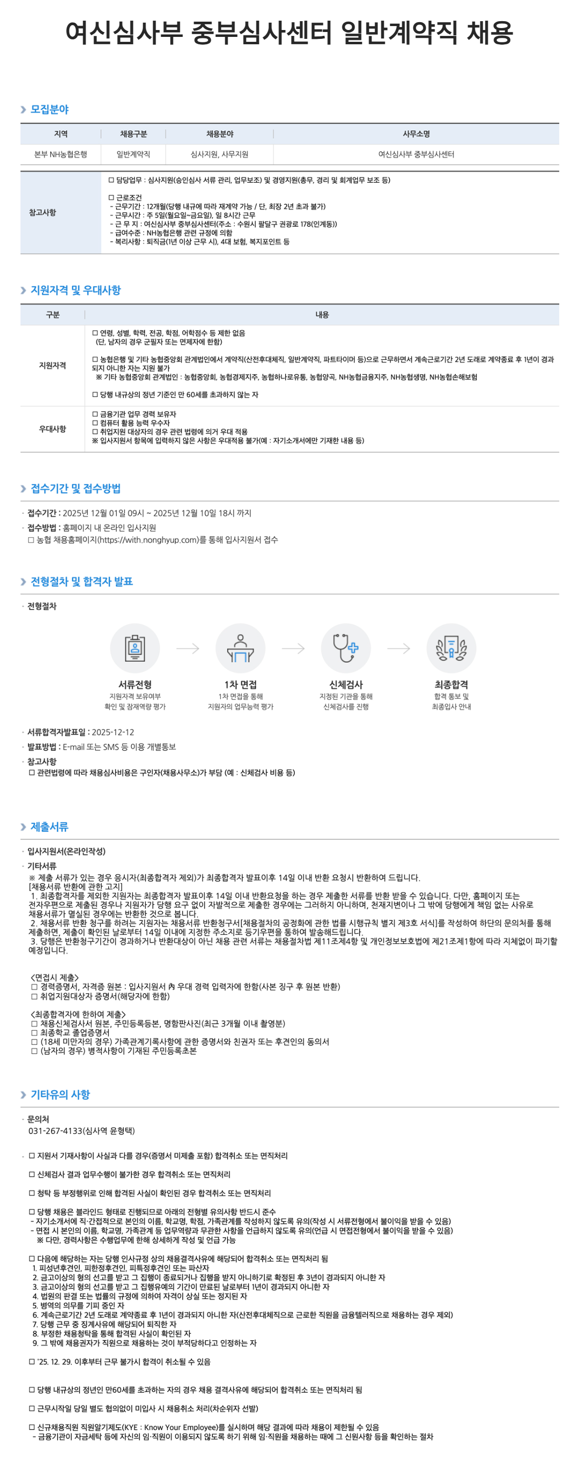 [NH농협은행] 여신심사부 중부심사센터 일반계약직 채용