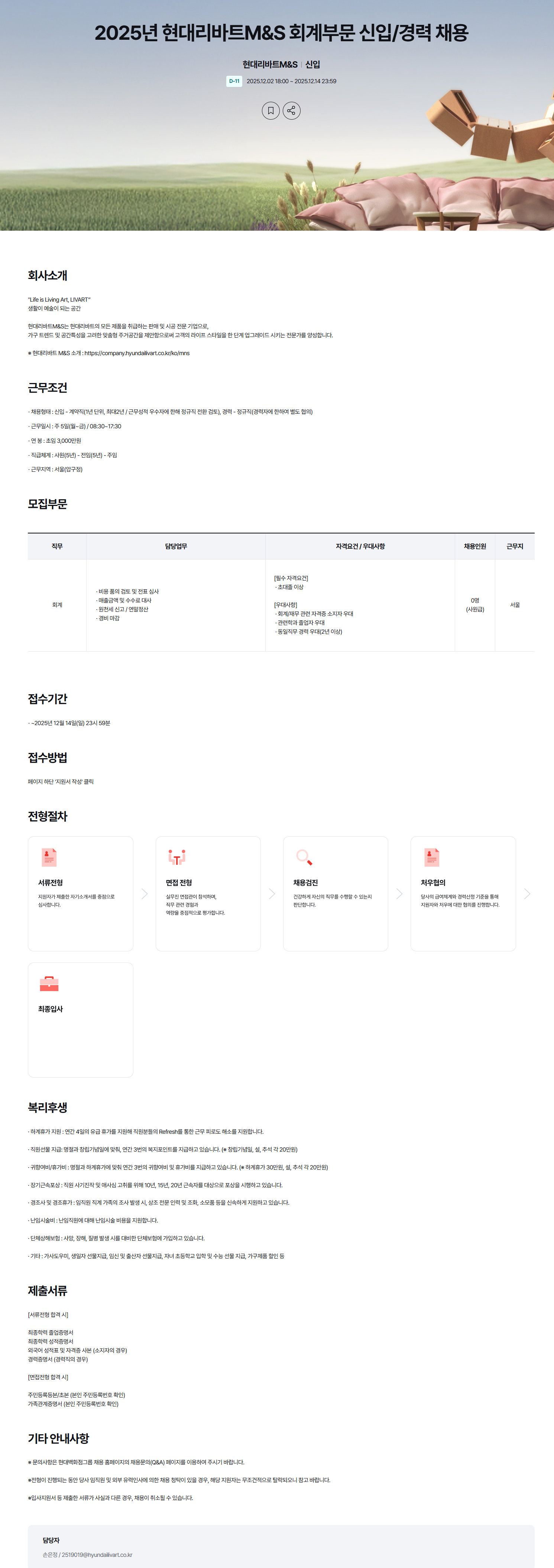 [현대리바트M&S] 2025년 회계부문 신입/경력 채용