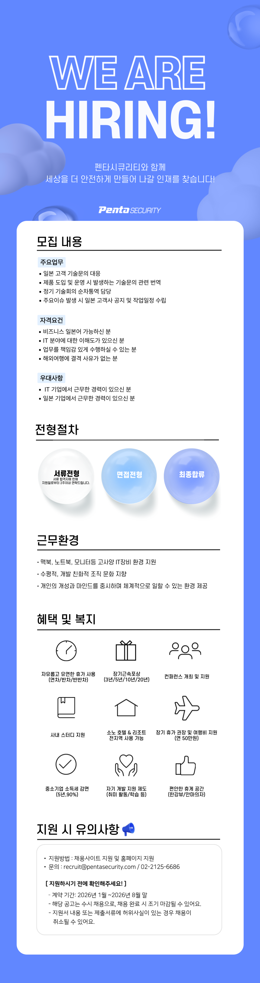 [펜타시큐리티시스템] 일본 기술지원 통/번역 계약직 사원 채용
