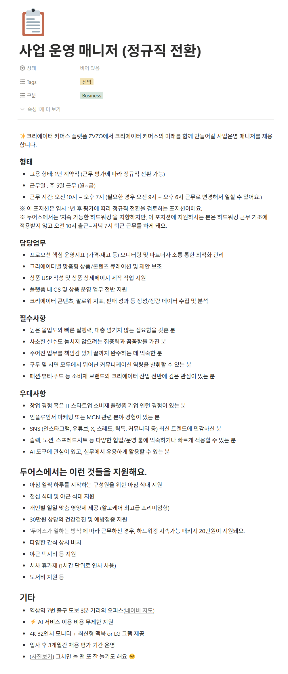 [두어스] 사업 운영 매니저 (정규직 전환) 채용