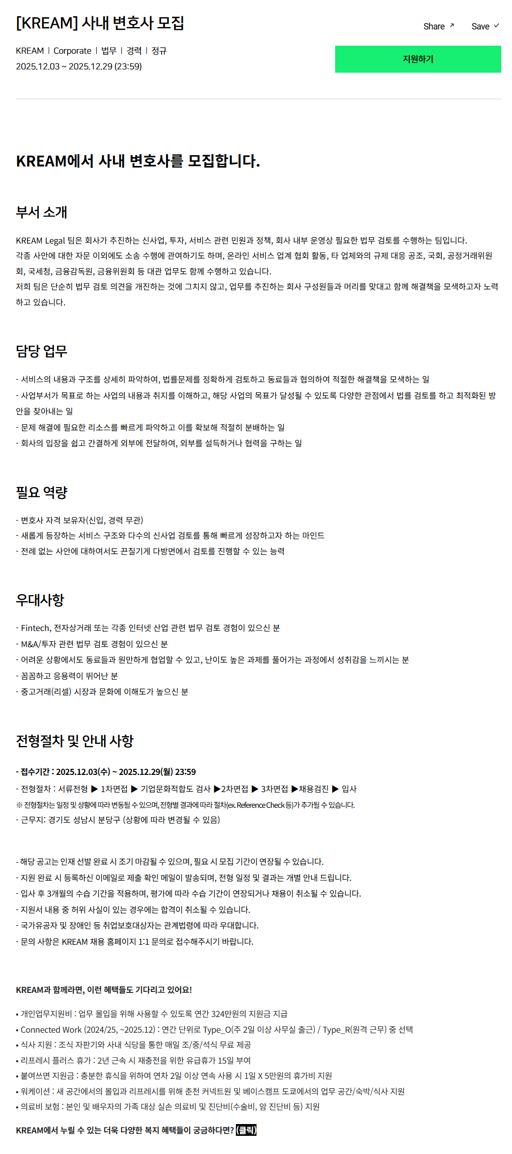 - M&A/투자 관련 법무 검토 경험이 있으신 분