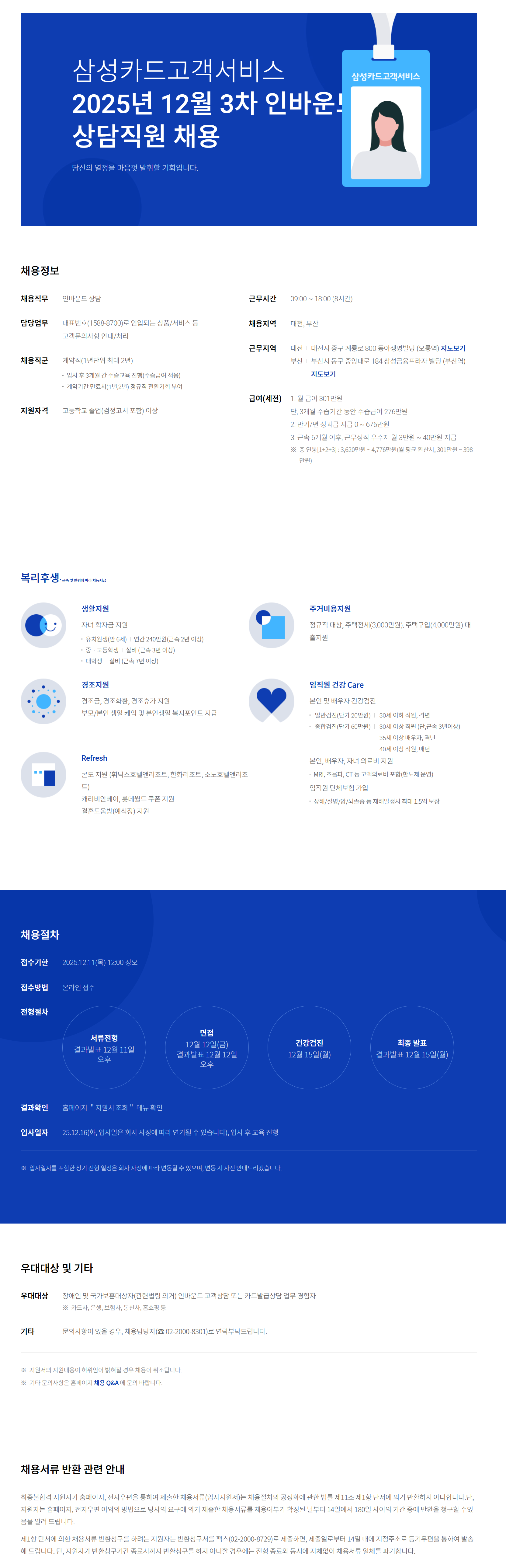 [삼성카드고객서비스] 2025년 12월 3차 인바운드 상담직원 채용