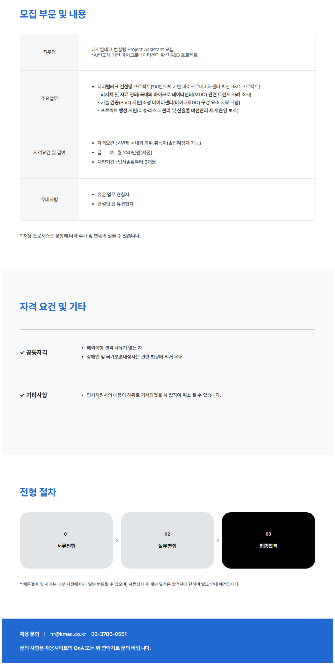 [한국능률협회컨설팅] [KMAC] 디지털테크 컨설팅 Project Assistant 채용