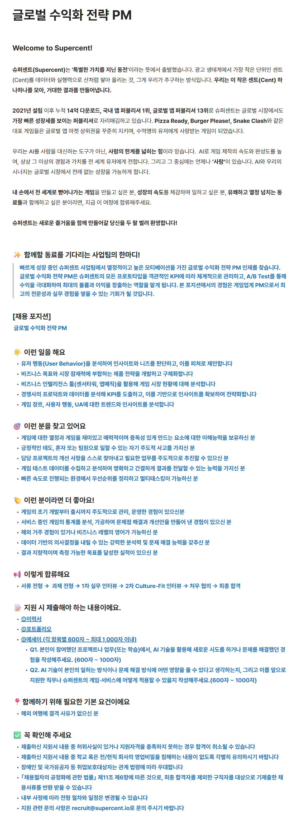 [슈퍼센트] 글로벌 수익화 전략 PM 채용
