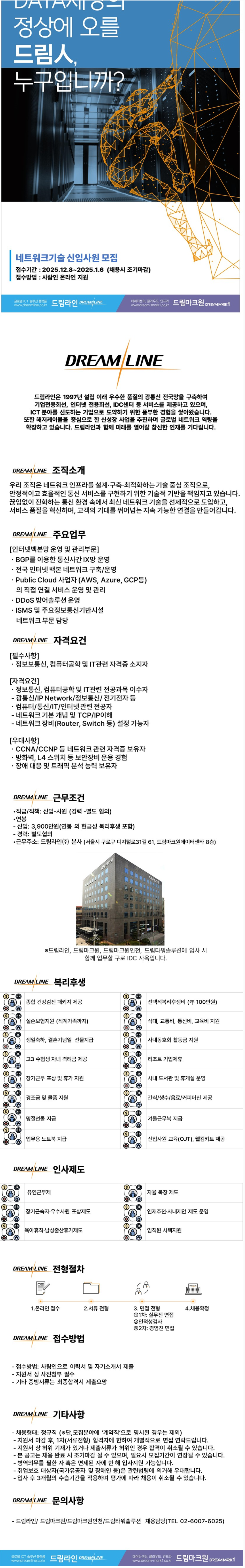 [드림라인] 네트워크기술 신입사원 모집