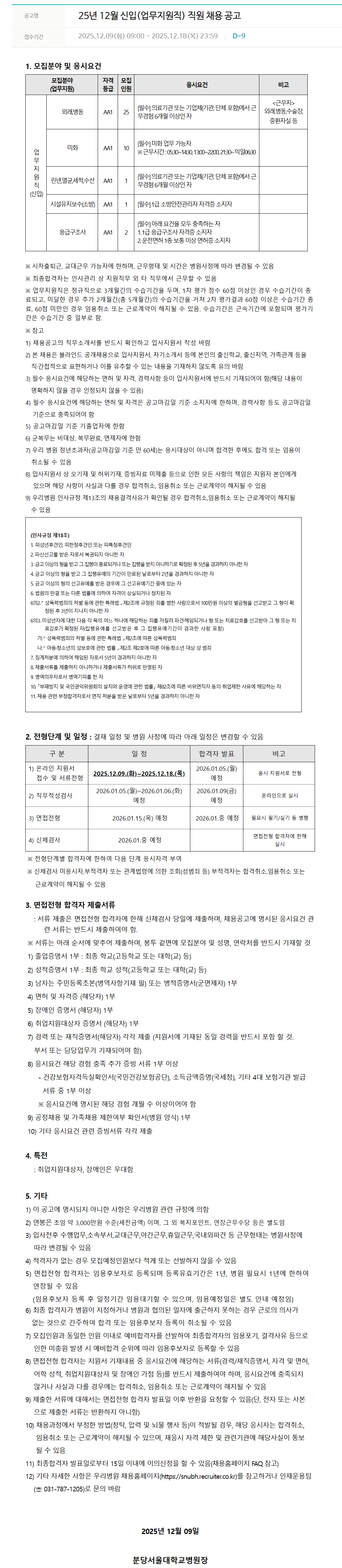 [분당서울대학교병원] 25년 12월 신입(업무지원직) 직원 채용 공고