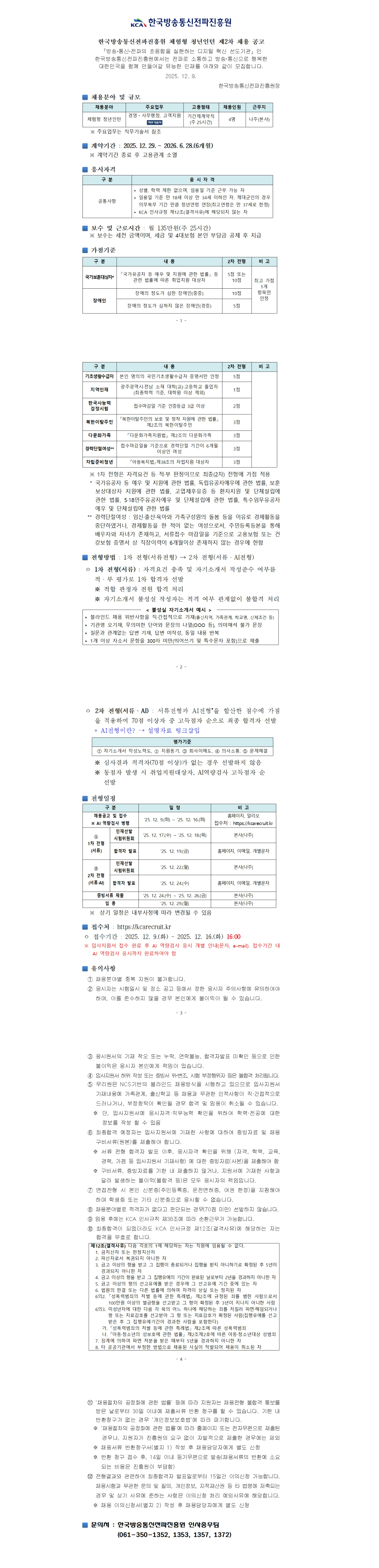 [한국방송통신전파진흥원] 2025년도 체험형 청년인턴 제2차 채용 공고