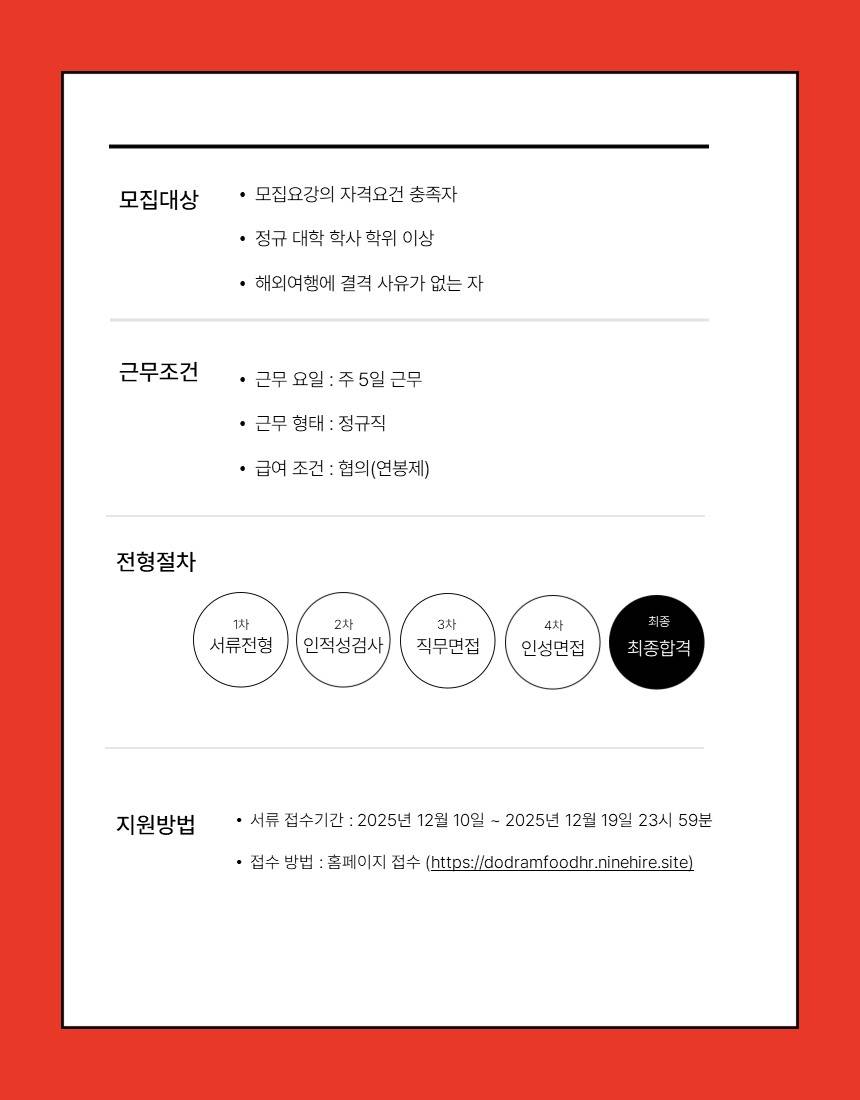 [도드람푸드] 2026년 상반기 수시채용(영업, 생산관리)
