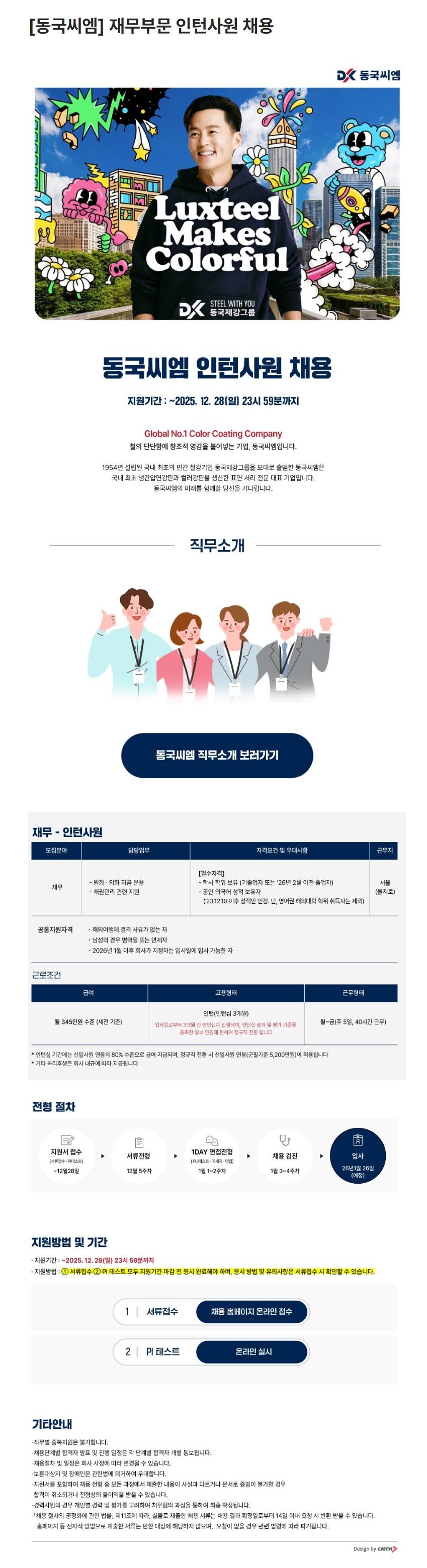 [동국씨엠] 재무부문 인턴사원 채용