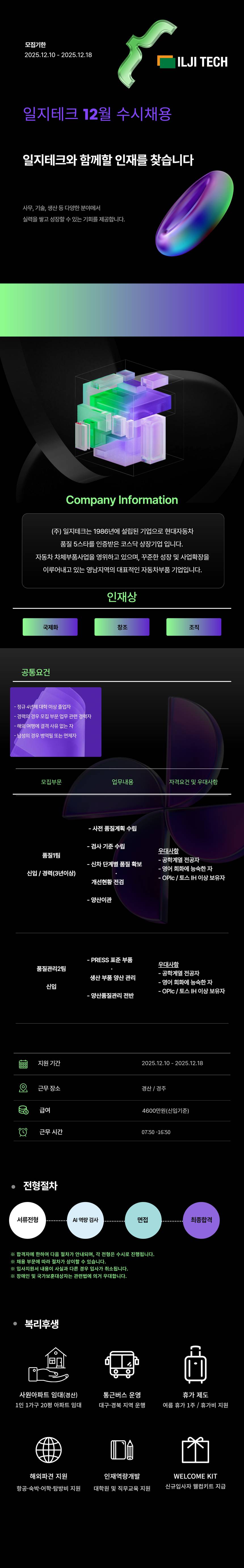 [일지테크] 12월 수시 신입/경력 채용