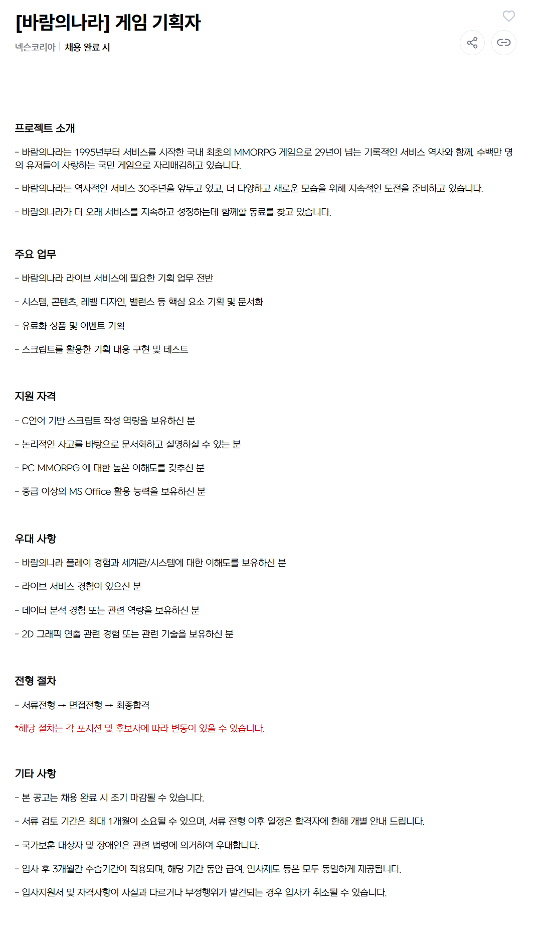 - 바람의나라 플레이 경험과 세계관/시스템에 대한 이해도를 보유하신 분