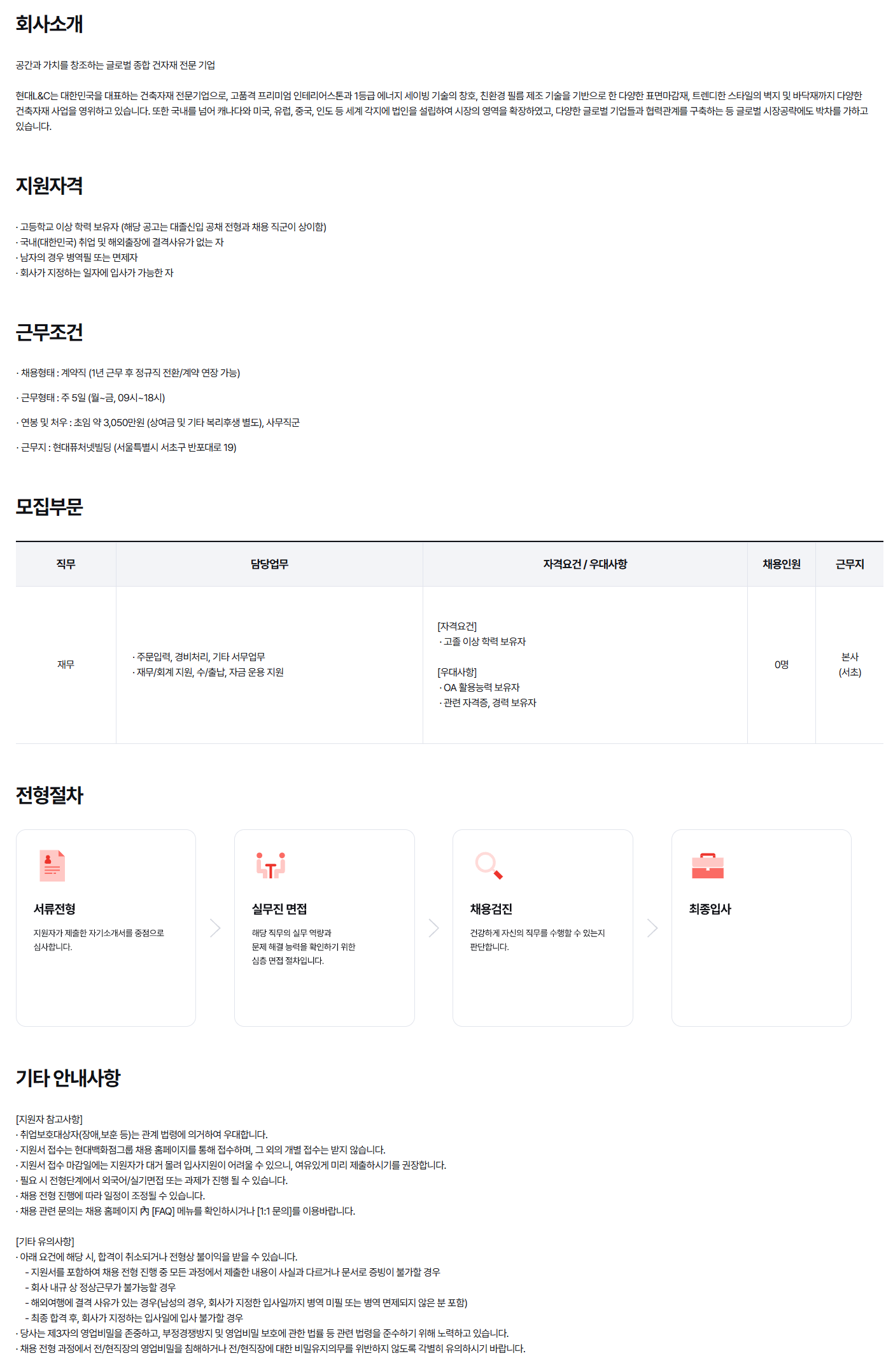 [현대L&C] 26년 상반기 사무계약직 채용 (재무)