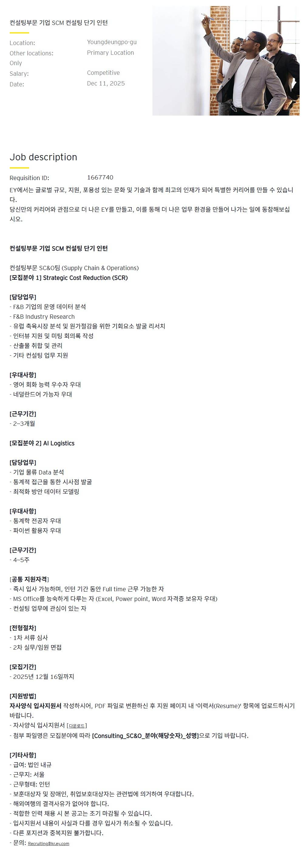 [EY한영] 컨설팅부문 기업 SCM 컨설팅 단기 인턴