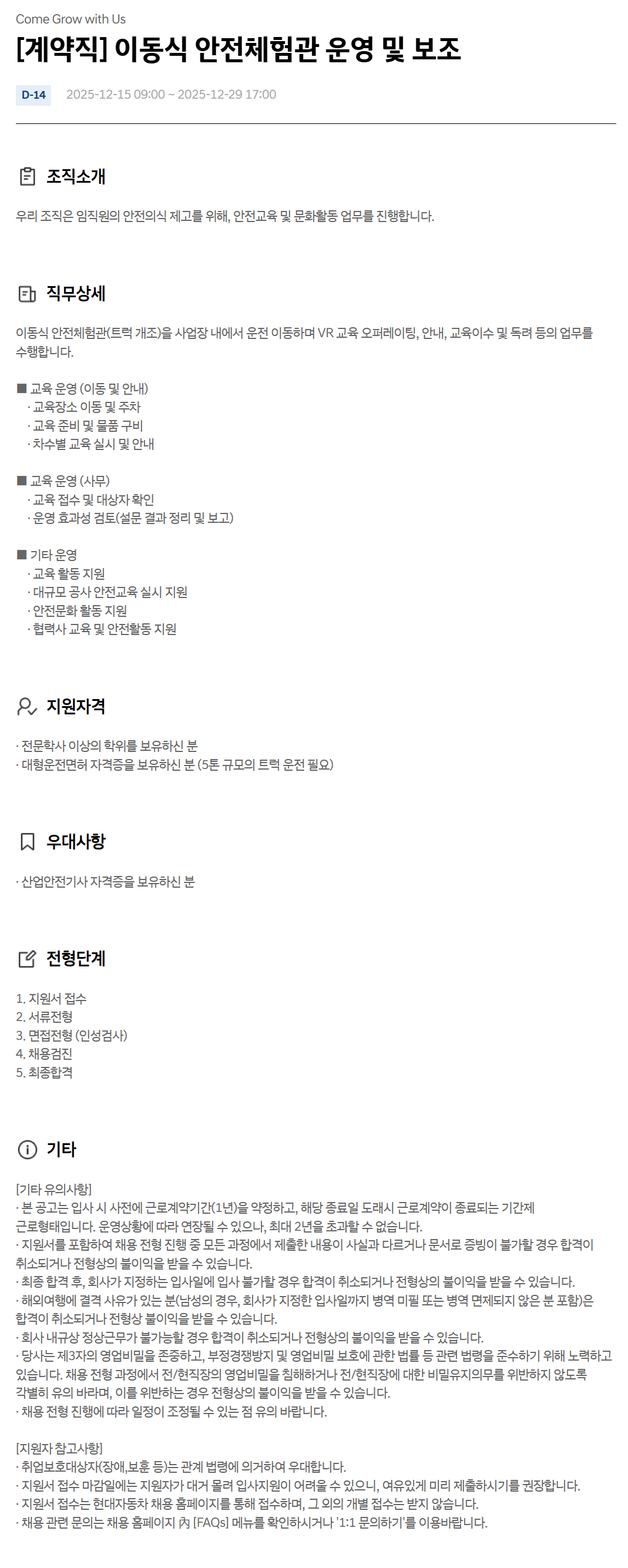 [현대자동차] [계약직] 이동식 안전체험관 운영 및 보조