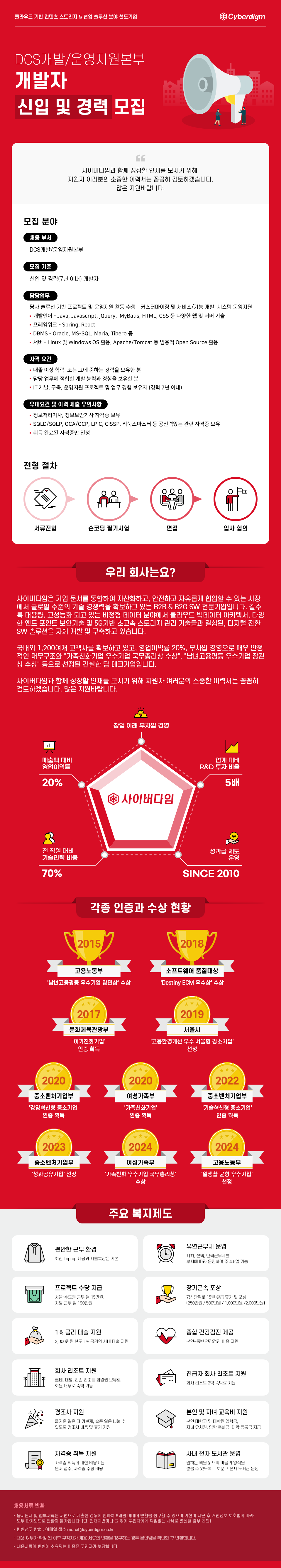 ㆍ 당사 솔루션 기반 프로젝트 및 운영지원 활동 수행 ㆍ 커스터마이징 및 서비스/기능 개발 ㆍ 시스템 운영지원
