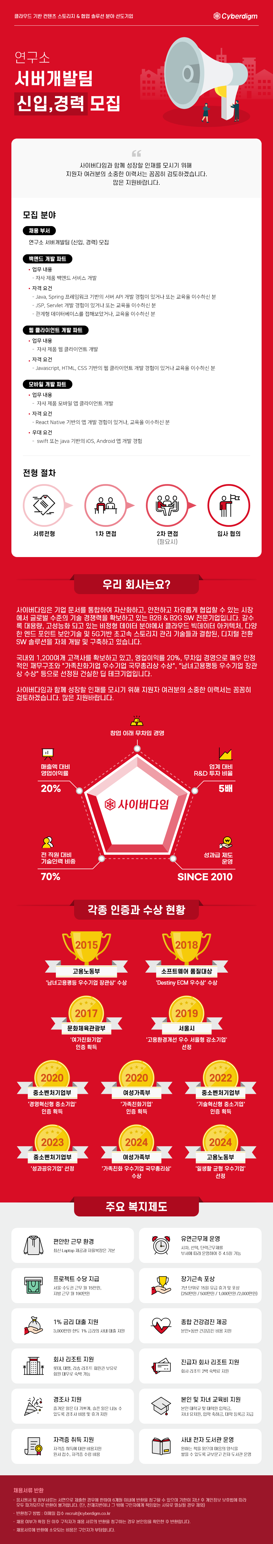 [사이버다임] 연구소 서버개발팀(백엔드/웹클라이언트/모바일) 개발자 채용(신입/경력)