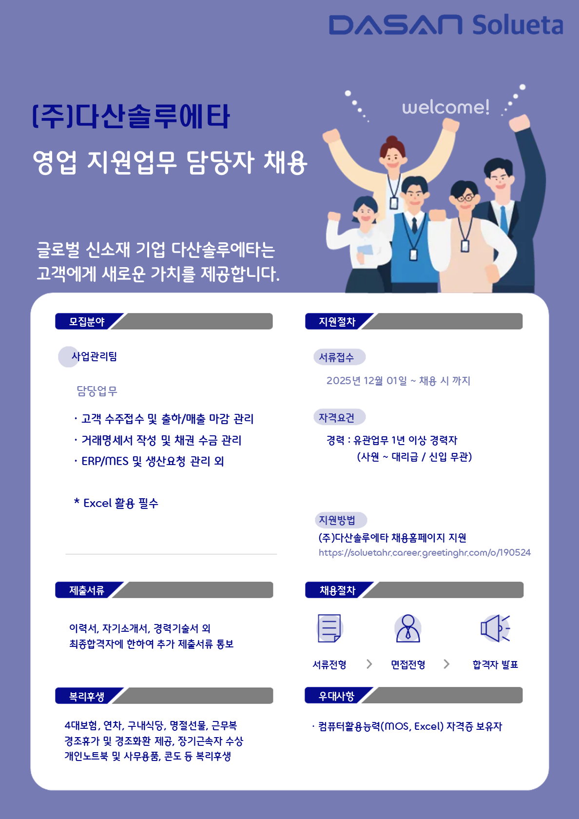 [다산솔루에타] 영업지원 담당자 채용(신입/경력)