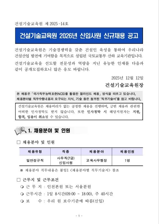 [건설기술교육원] 2026년 신입사원 신규채용 공고