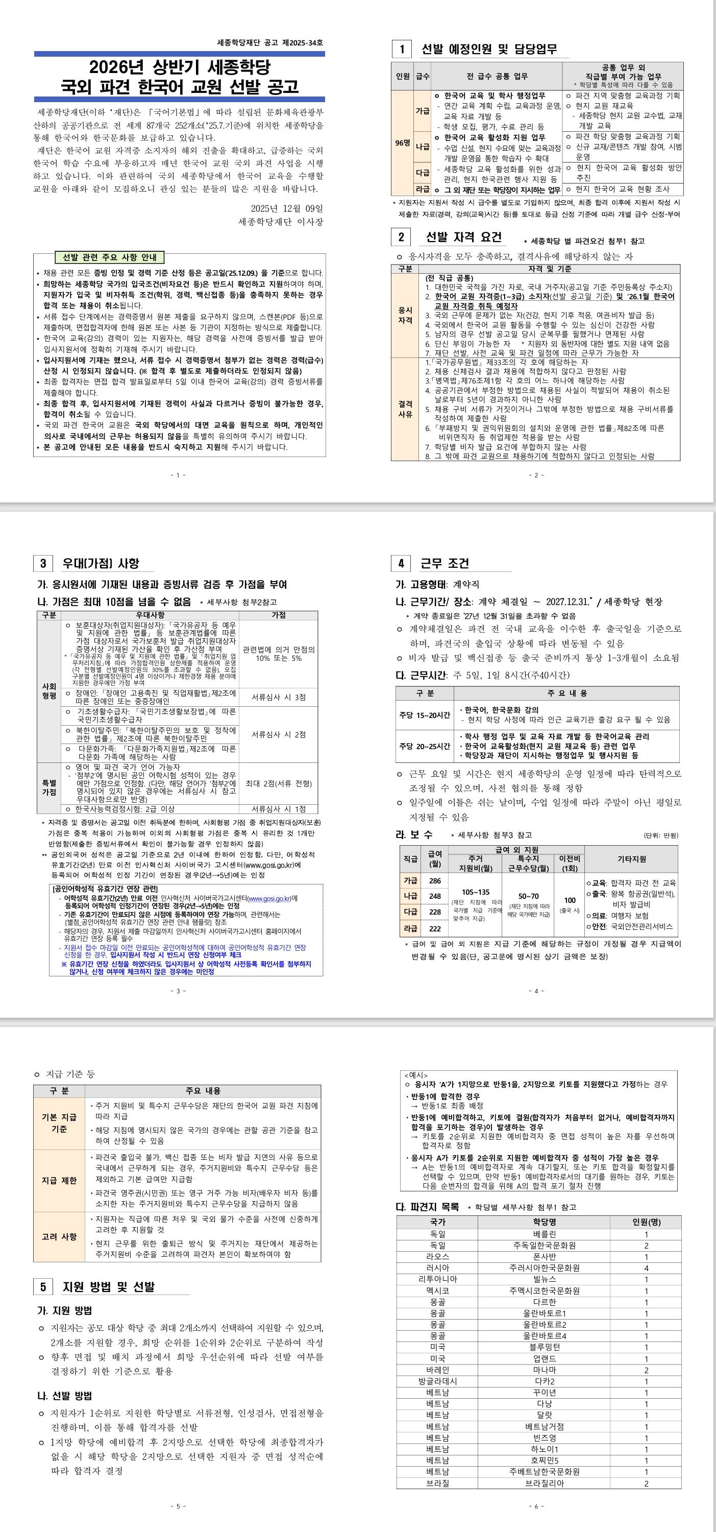 [세종학당재단] 2026년 상반기 세종학당 국외 파견 한국어 교원 선발