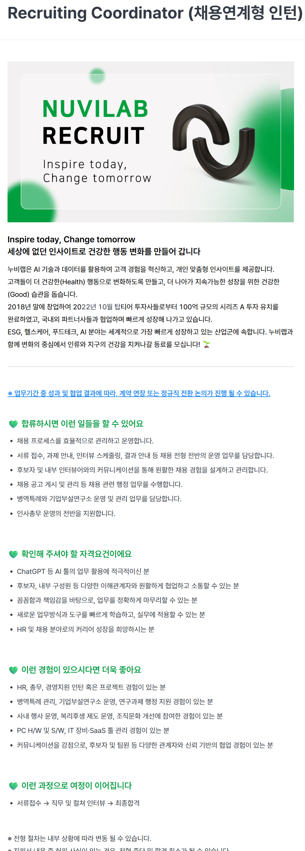 [누비랩] Recruiting Coordinator (채용연계형 인턴)