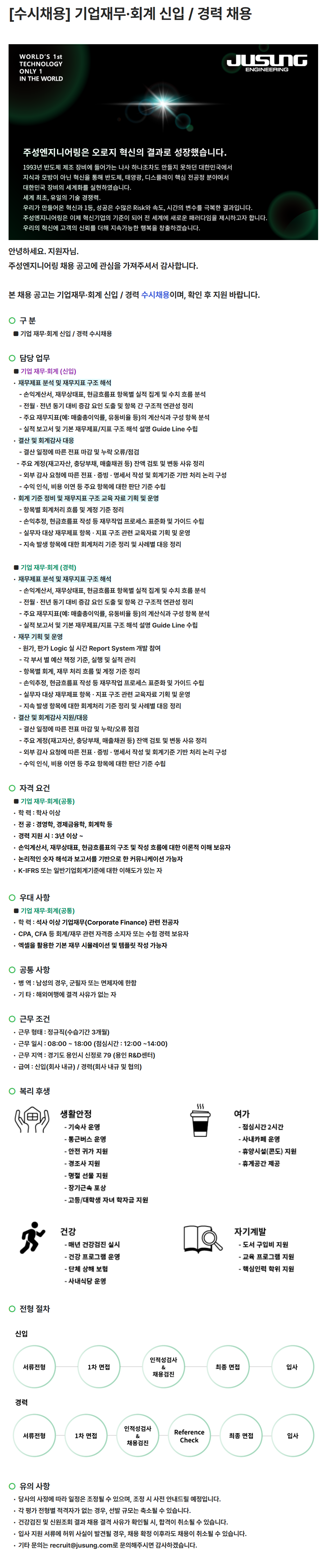 [주성엔지니어링] [수시채용] 기업재무·회계 신입 / 경력 채용