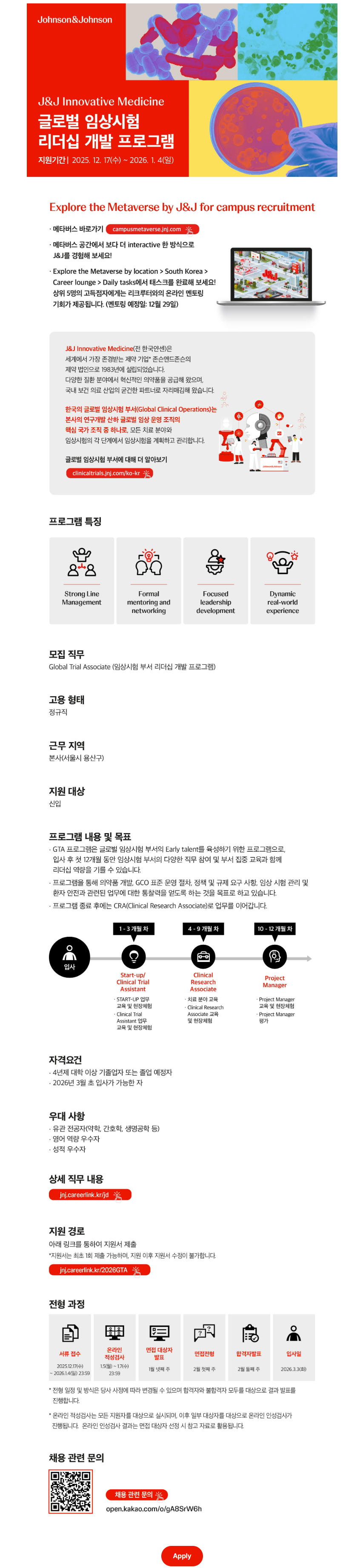 [존슨앤드존슨] Innovative Medicine 글로벌 임상시험 리더십 개발 프로그램