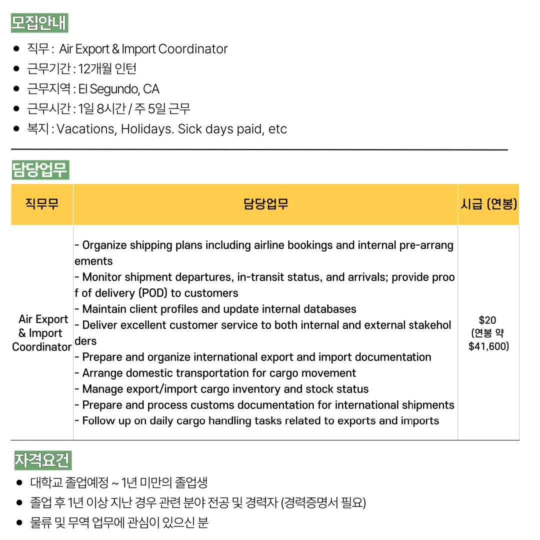 [미국인턴] NIPPON EXPRESS USA, INC. LA 지점 Air Export 인턴 채용
