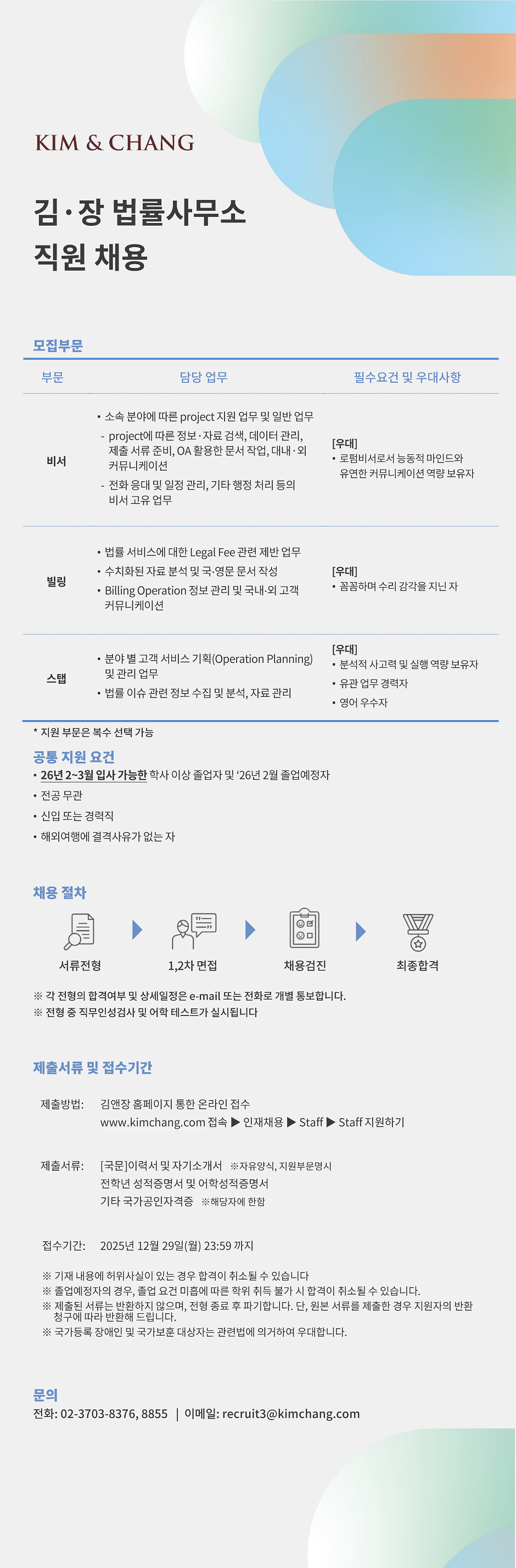 [김앤장법률사무소] 직원(비서, 빌링, 스탭) 채용