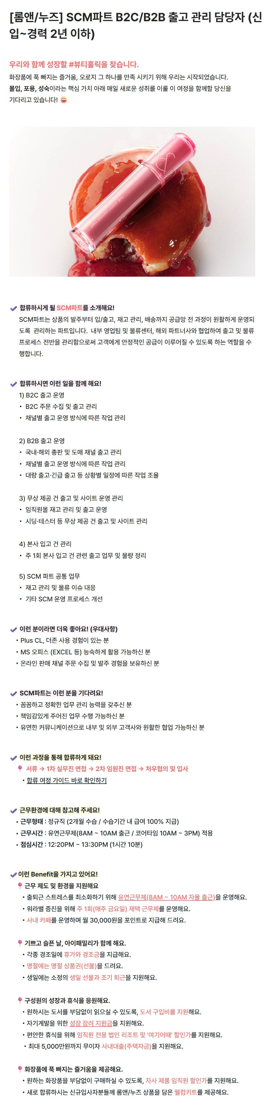 [아이패밀리SC] [롬앤/누즈] SCM파트 B2C/B2B 출고 관리 담당자 (신입~경력 2년 이하)