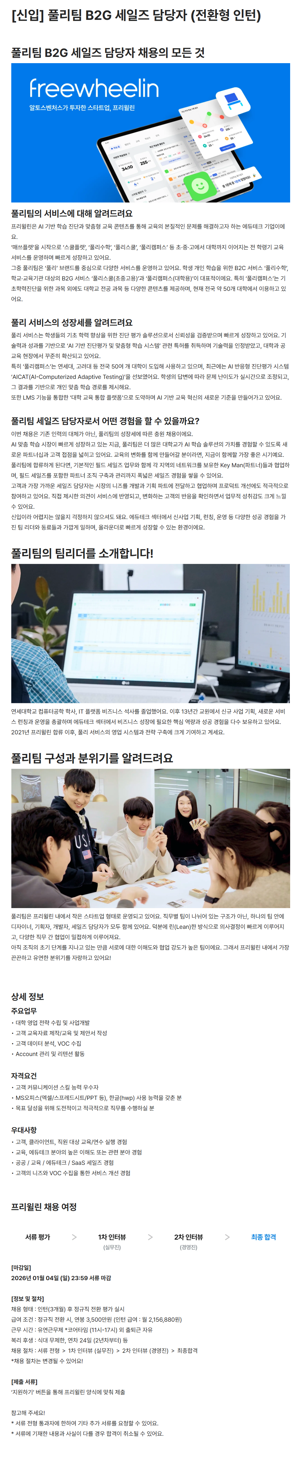[프리윌린] 풀리팀 B2G 세일즈 담당자 (전환형 인턴) 채용