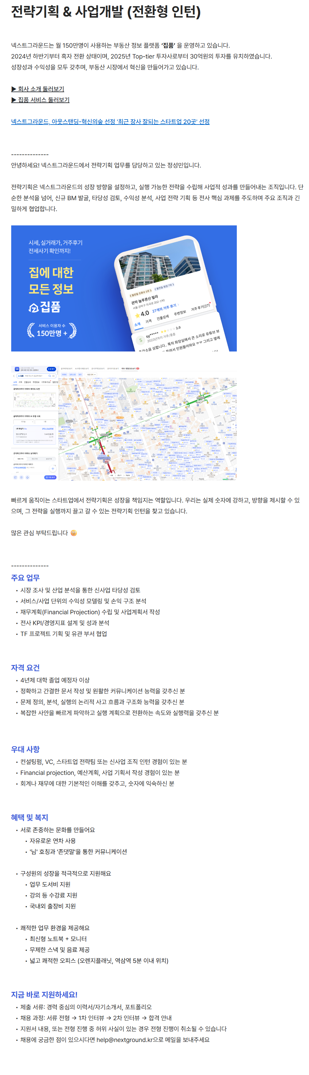 [넥스트그라운드] 전략기획 & 사업개발 (전환형 인턴)