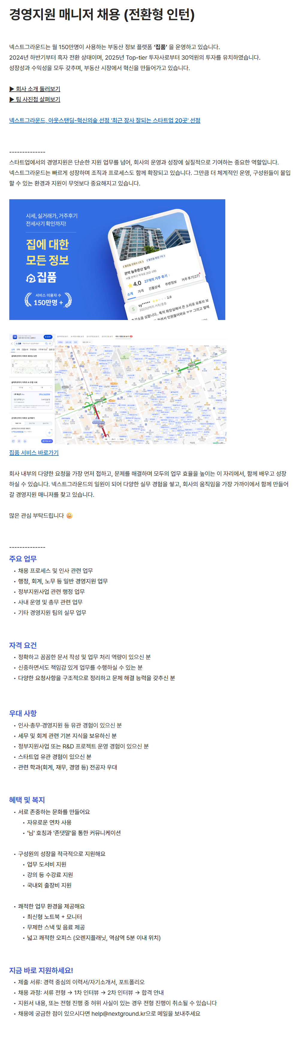 [넥스트그라운드] 경영지원 매니저 채용 (전환형 인턴)