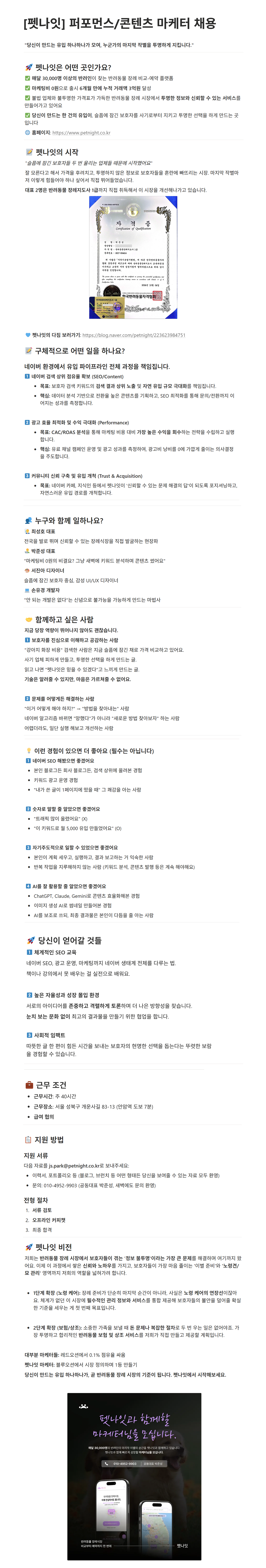 [펫나잇] 퍼포먼스/콘텐츠 마케터 채용