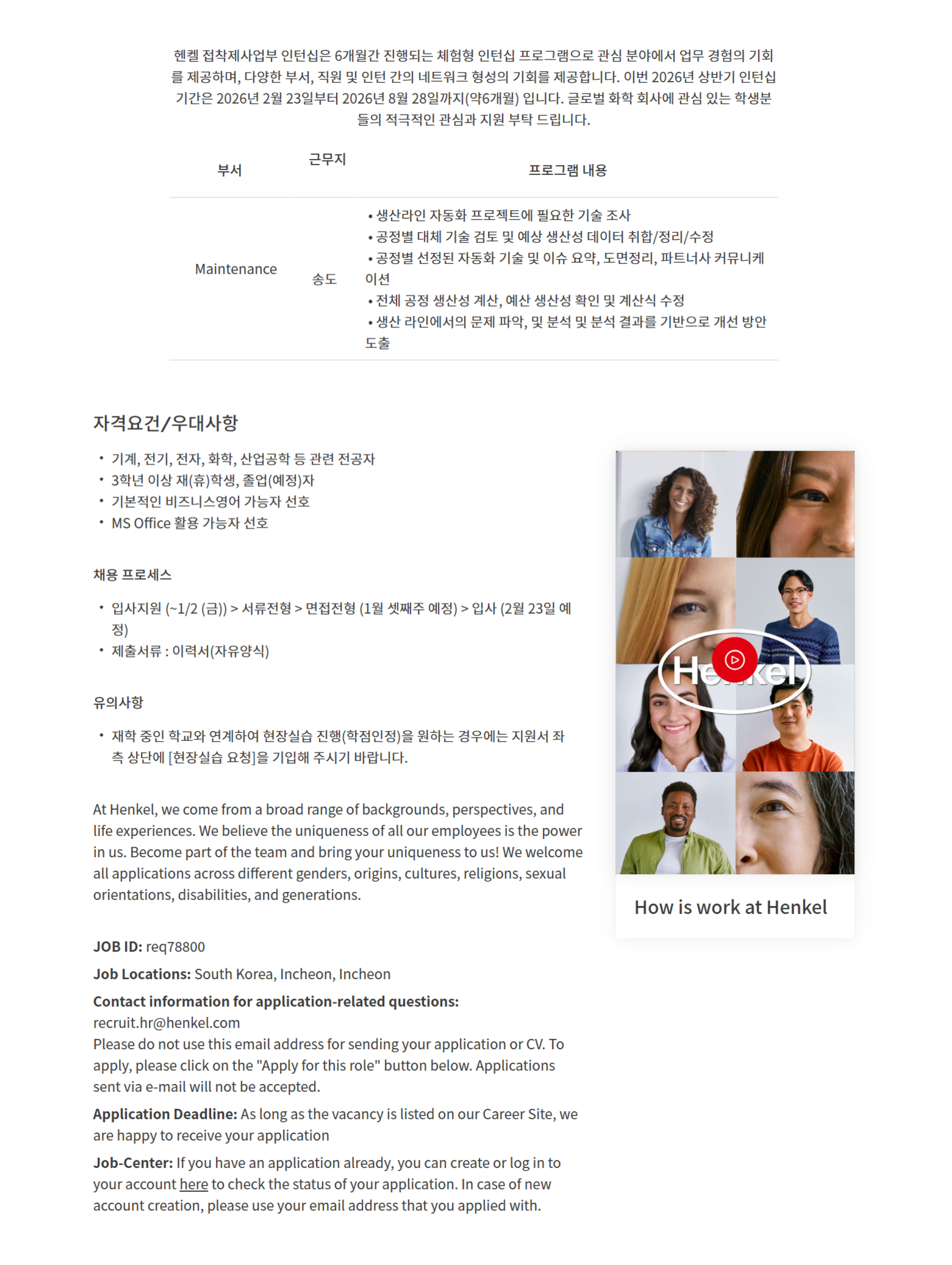 Henkel Adhesive Internship Program - SHE/Maintenance - Songdo