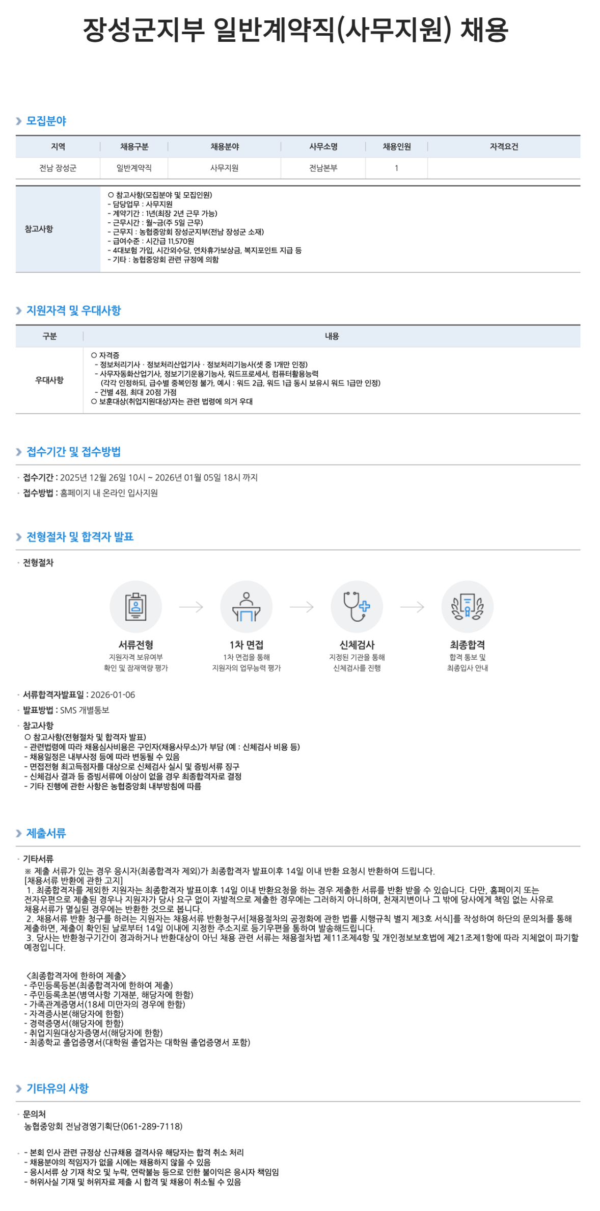 - 근무지 : 농협중앙회 장성군지부(전남 장성군 소재)