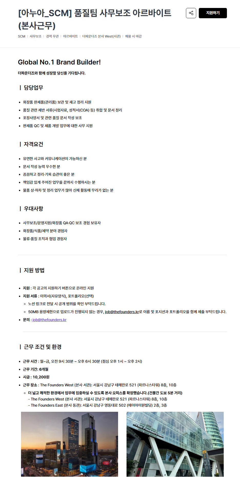 - 사무보조/ 운영지원/ 화장품 QA, QC 보조 경험 보유자