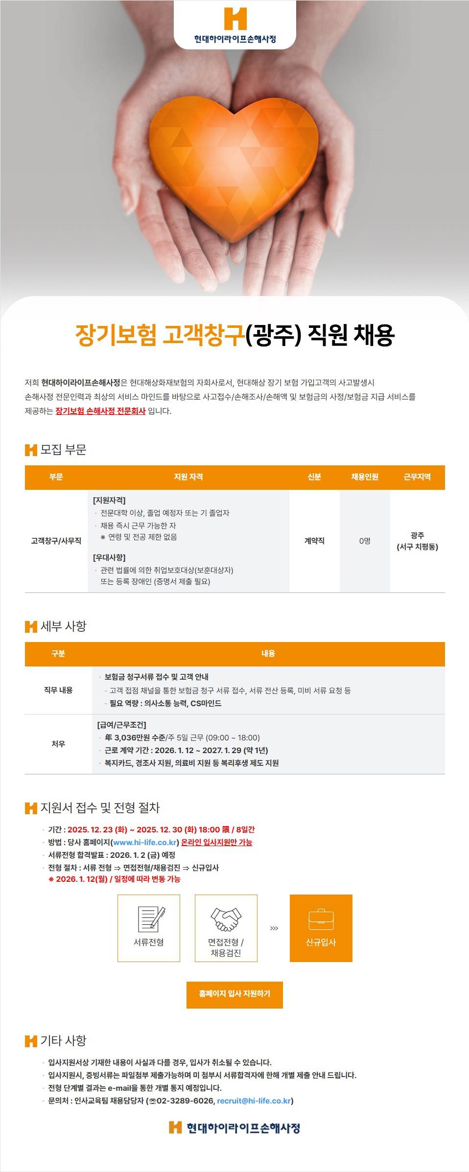 [현대하이라이프손해사정] 장기보험 고객창구(광주) 직원 채용
