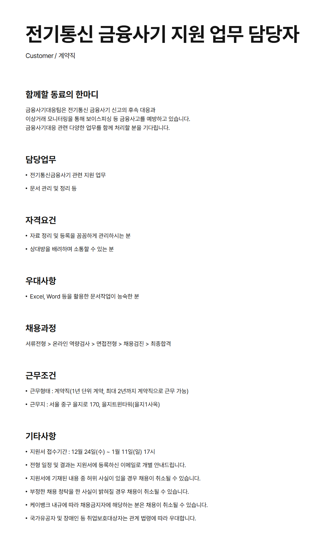 [케이뱅크] 전기통신 금융사기 지원 업무 담당자
