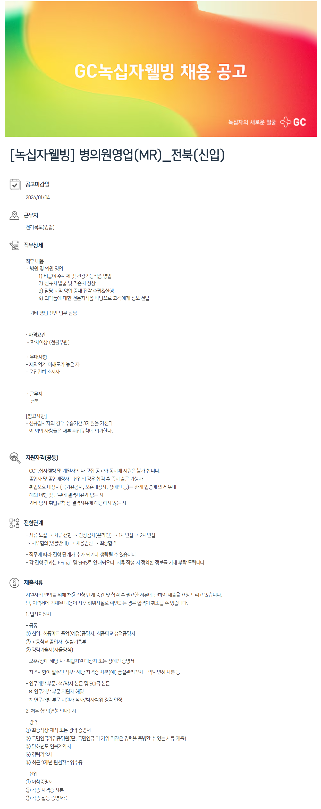[GC녹십자웰빙] 병의원영업(MR)_전북(신입)
