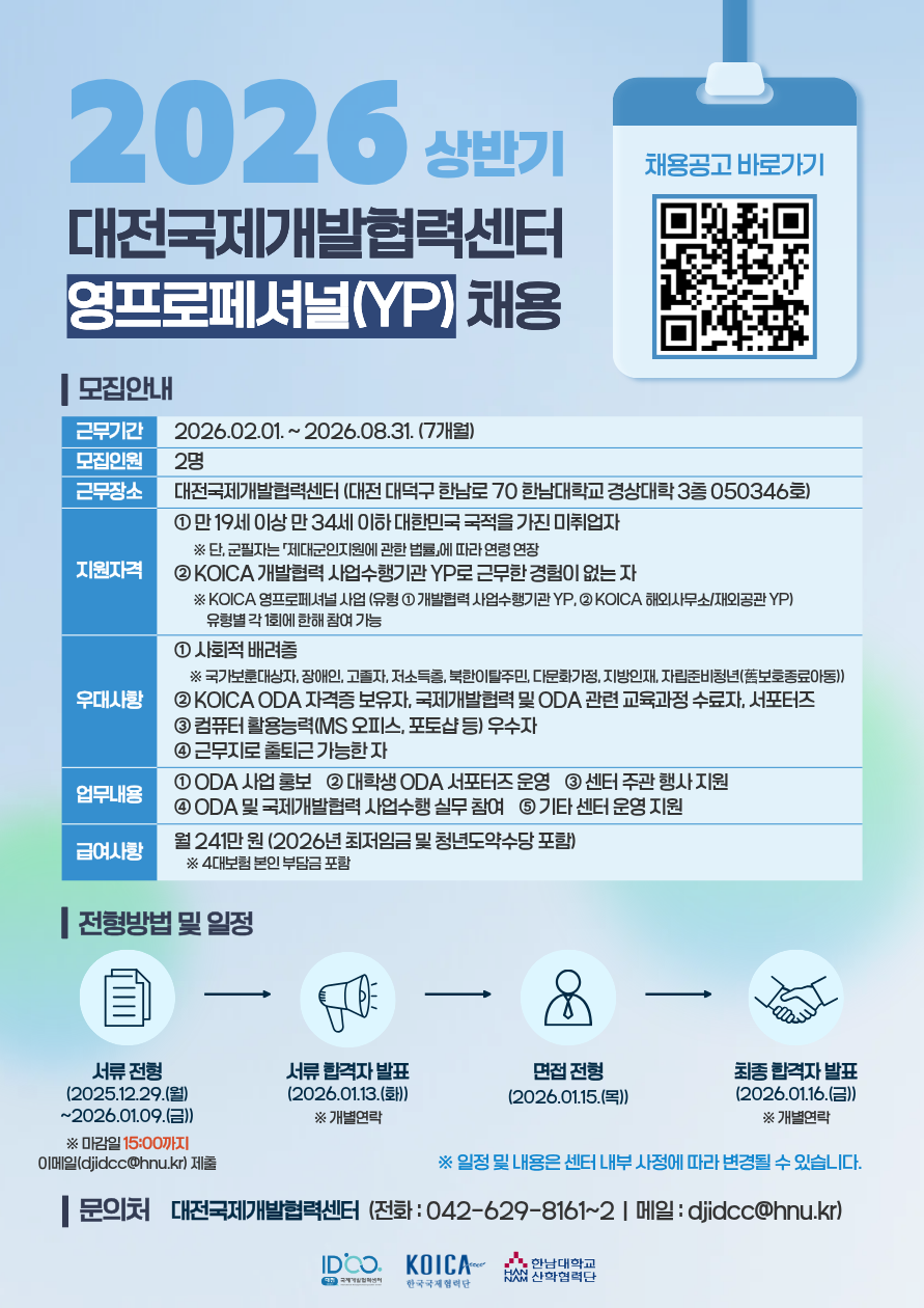 [채용] 2026년 상반기 대전국제개발협력센터 영프로페셔널(YP) 채용 안내 (~26.1.9.(금) 15:00까지)