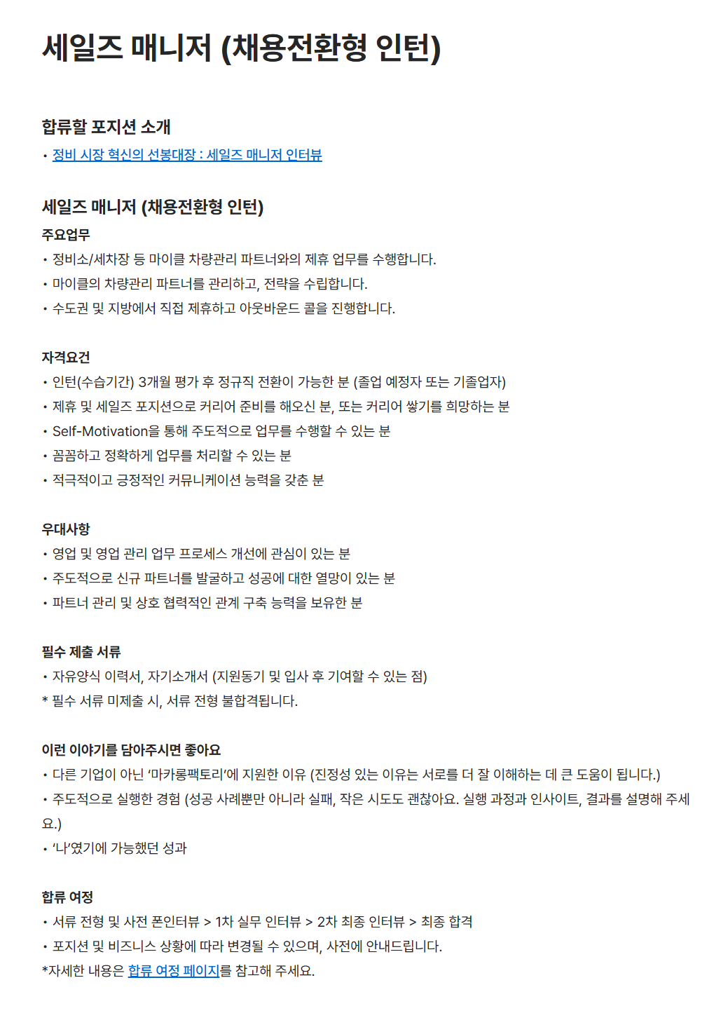 [마카롱팩토리] 세일즈 매니저 (채용전환형 인턴)