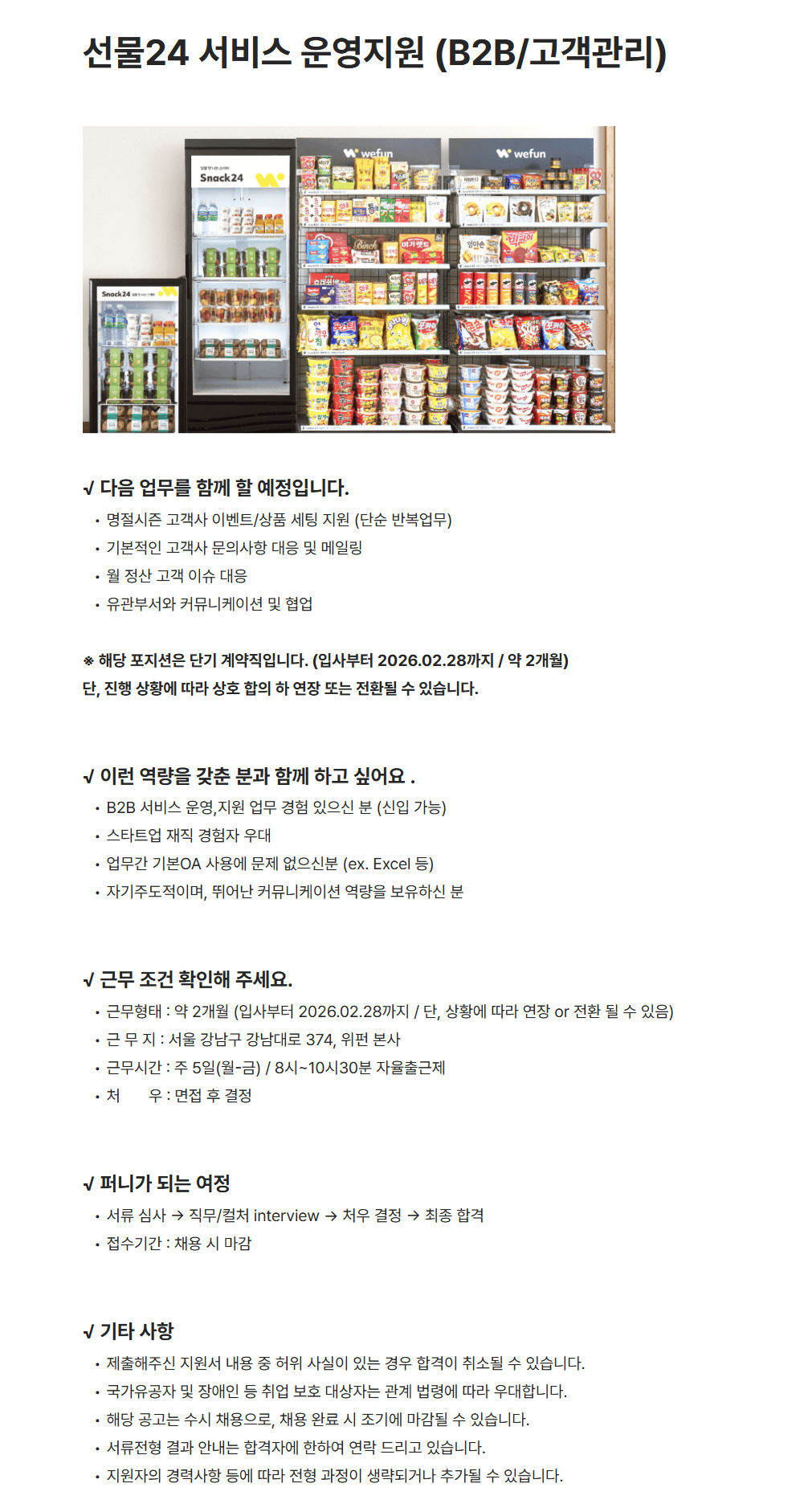 [위펀] 선물24 서비스 운영지원 (B2B/고객관리)