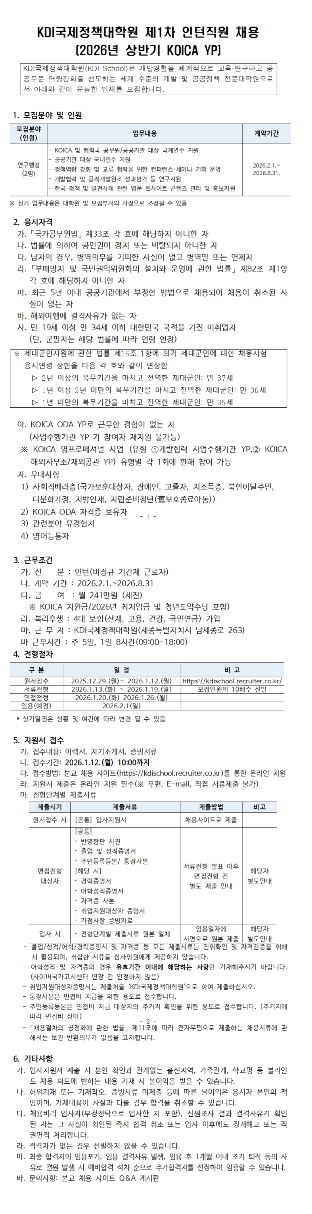 - KOICA ODA YP로 근무한 경험이 없는 자