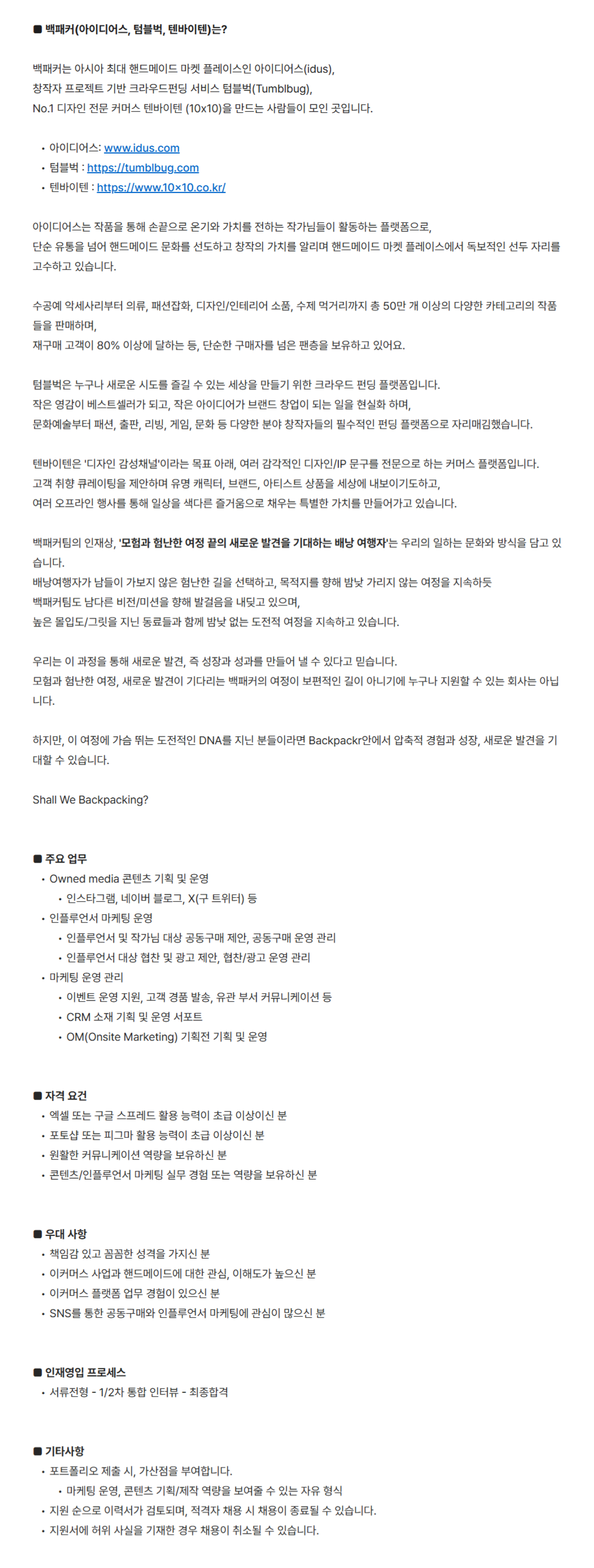 - 콘텐츠/인플루언서 마케팅 실무 경험 또는 역량을 보유하신 분